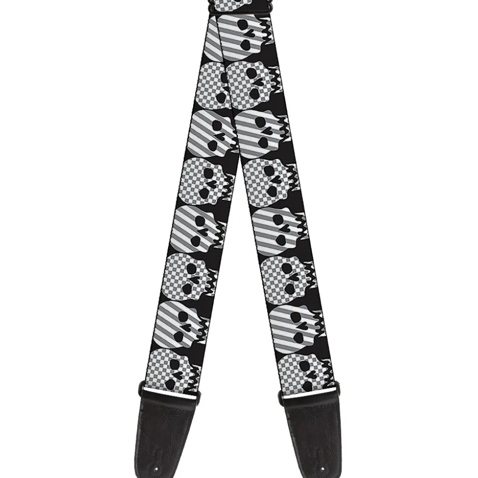 Guitar Strap - Checker & Stripe Skulls Black White Gray