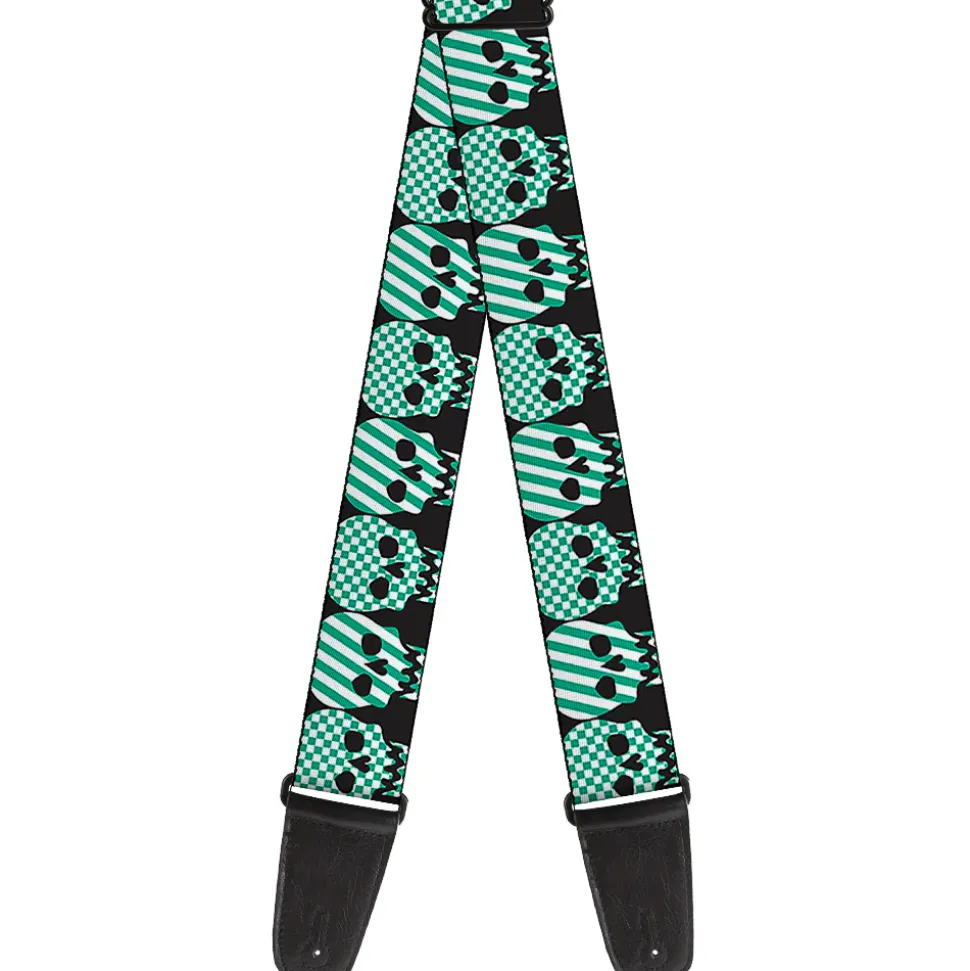 Guitar Strap - Checker & Stripe Skulls Black White Green