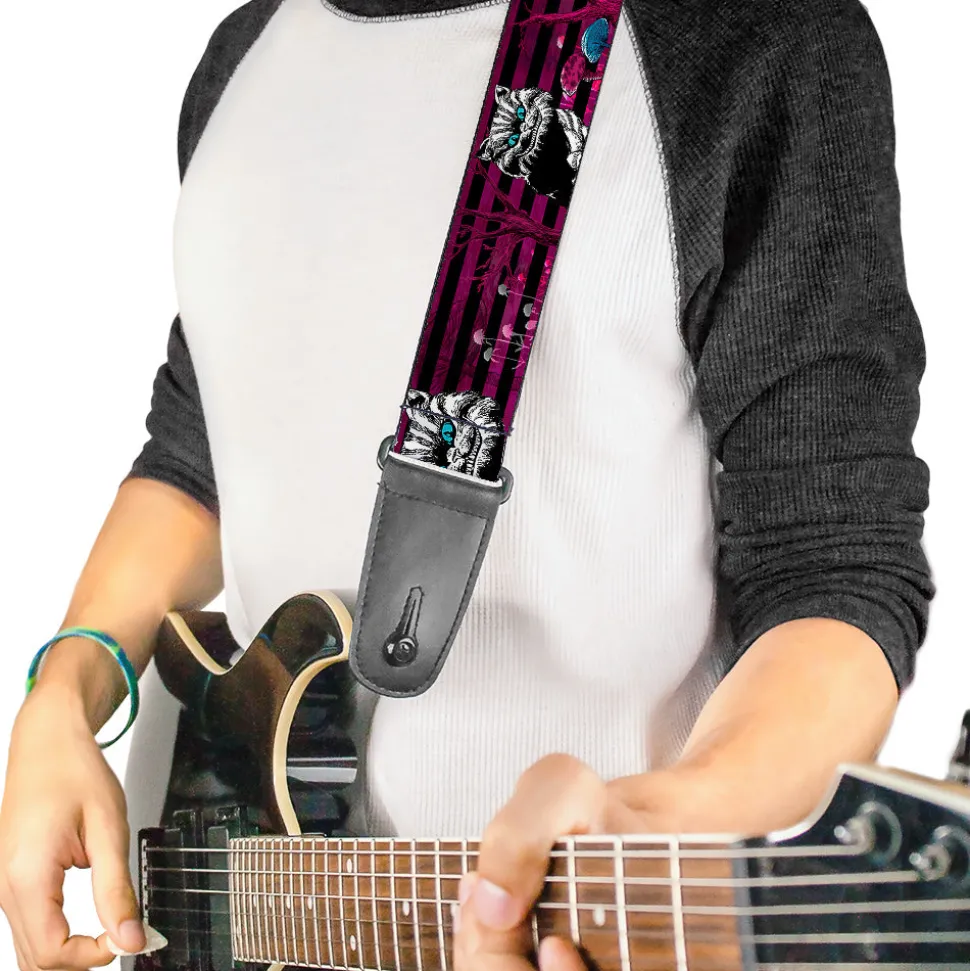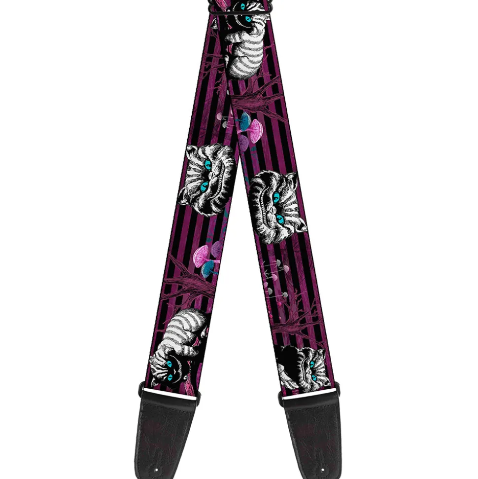 Guitar Strap – Cheshire Cat Face Poses Stripe Purple Black White