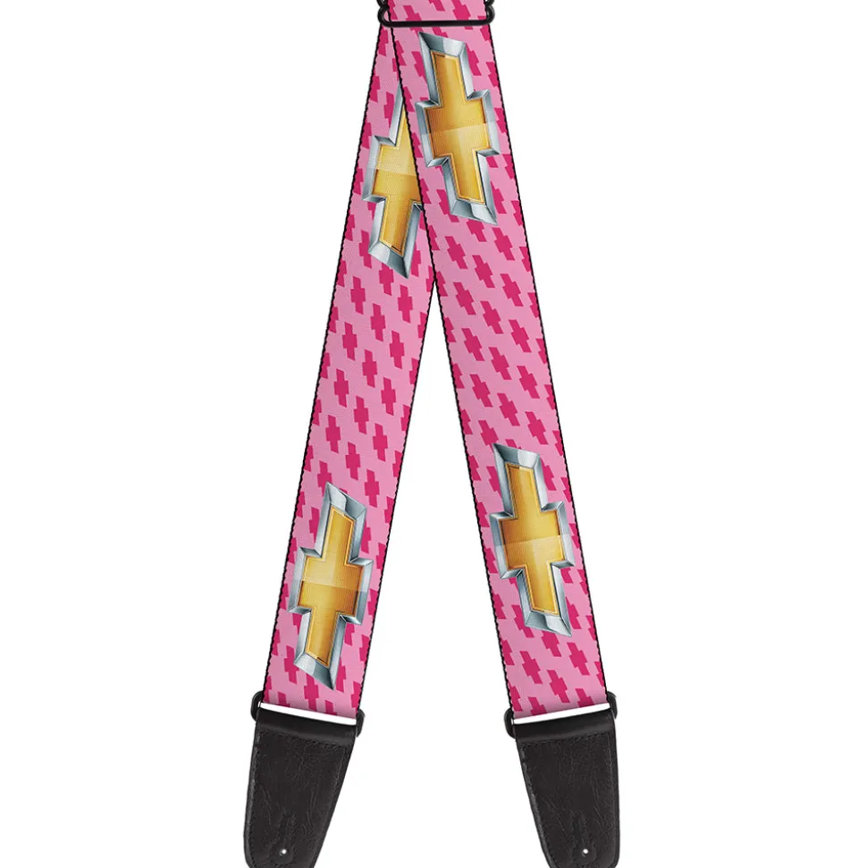 Guitar Strap – Chevy Gold Bowtie w Logo PINK
