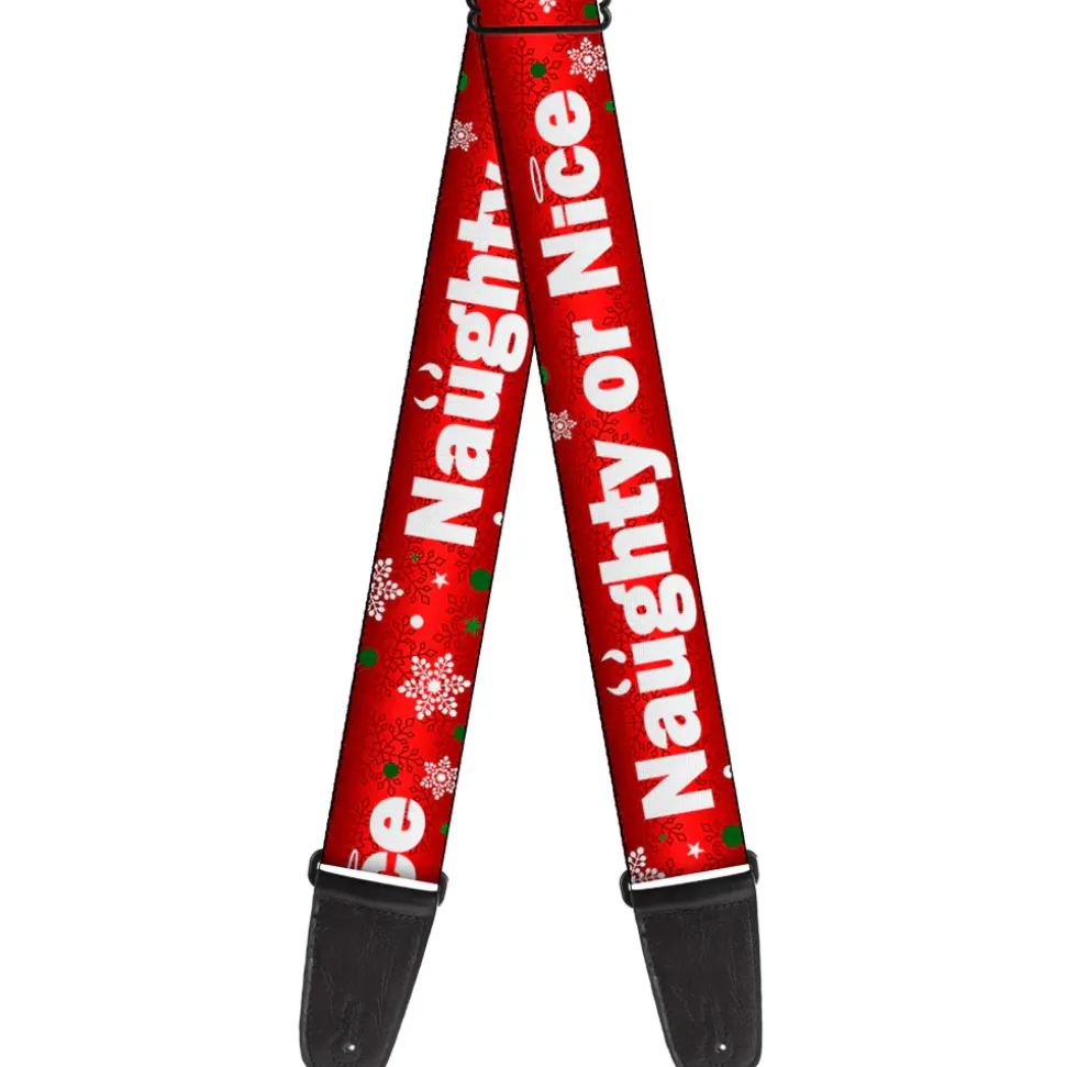 Guitar Strap – Christams NAUGHTY OR NICE Snowflakes Reds White Green