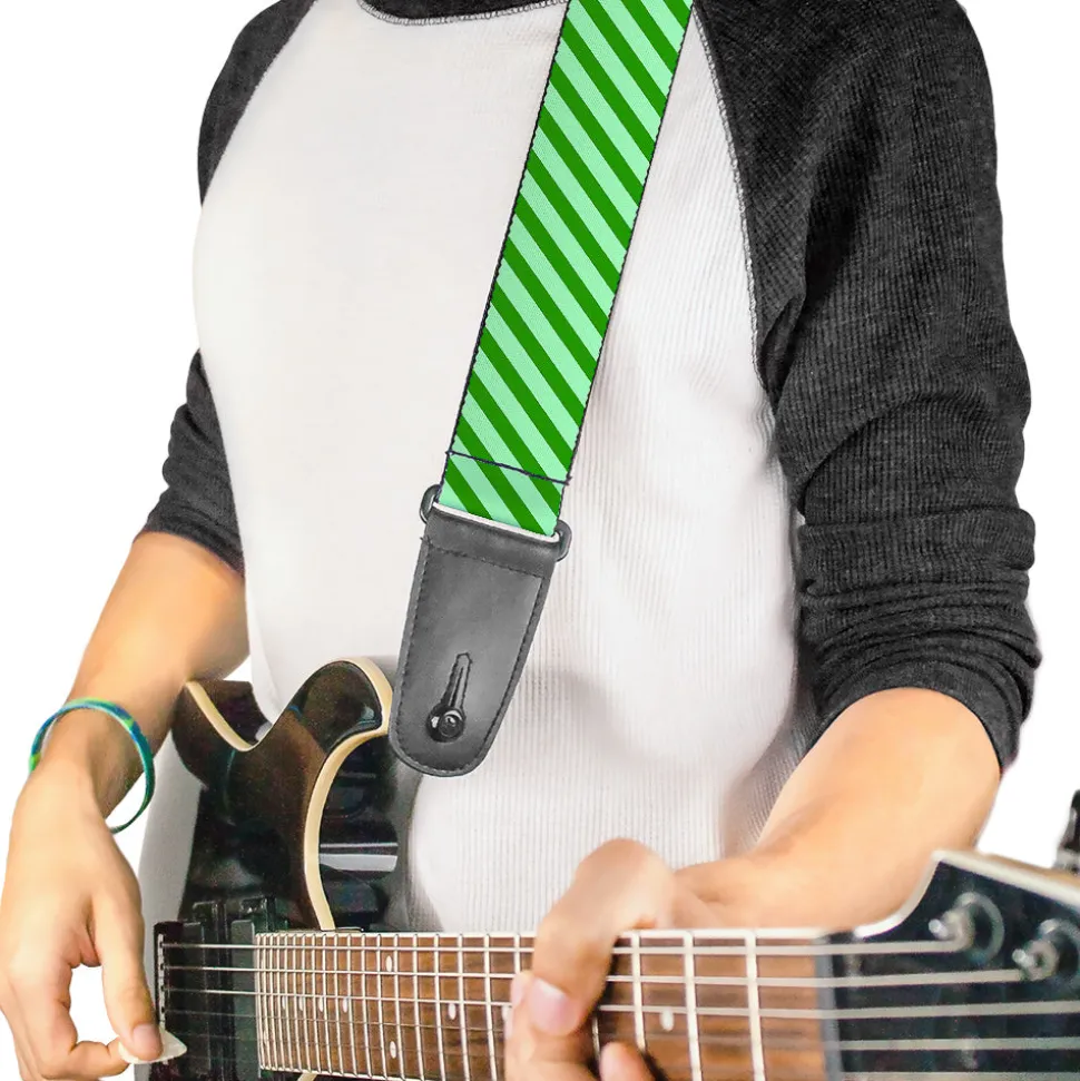 Guitar Strap – Diagonal Stripes Pastel Greens