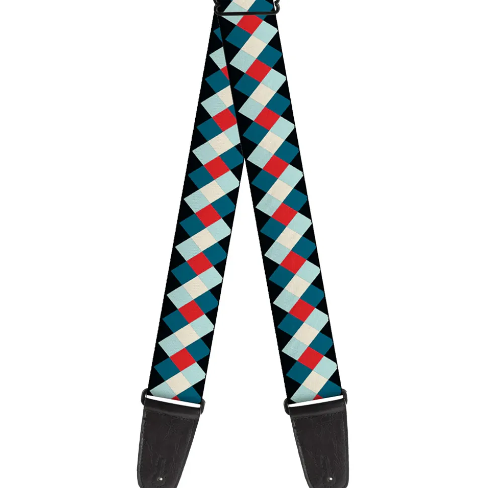 Guitar Strap – Diamond Plaid Blues Khaki Red