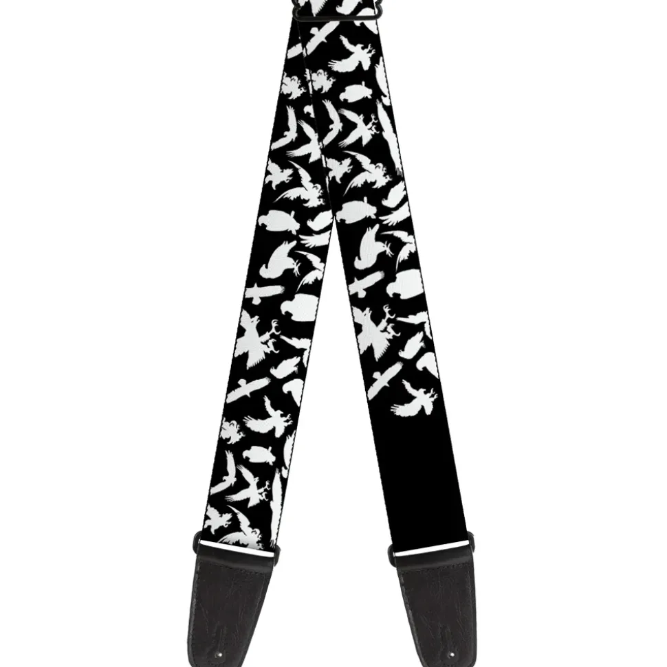 Guitar Strap - Eagle Silhouettes Scattered Black White