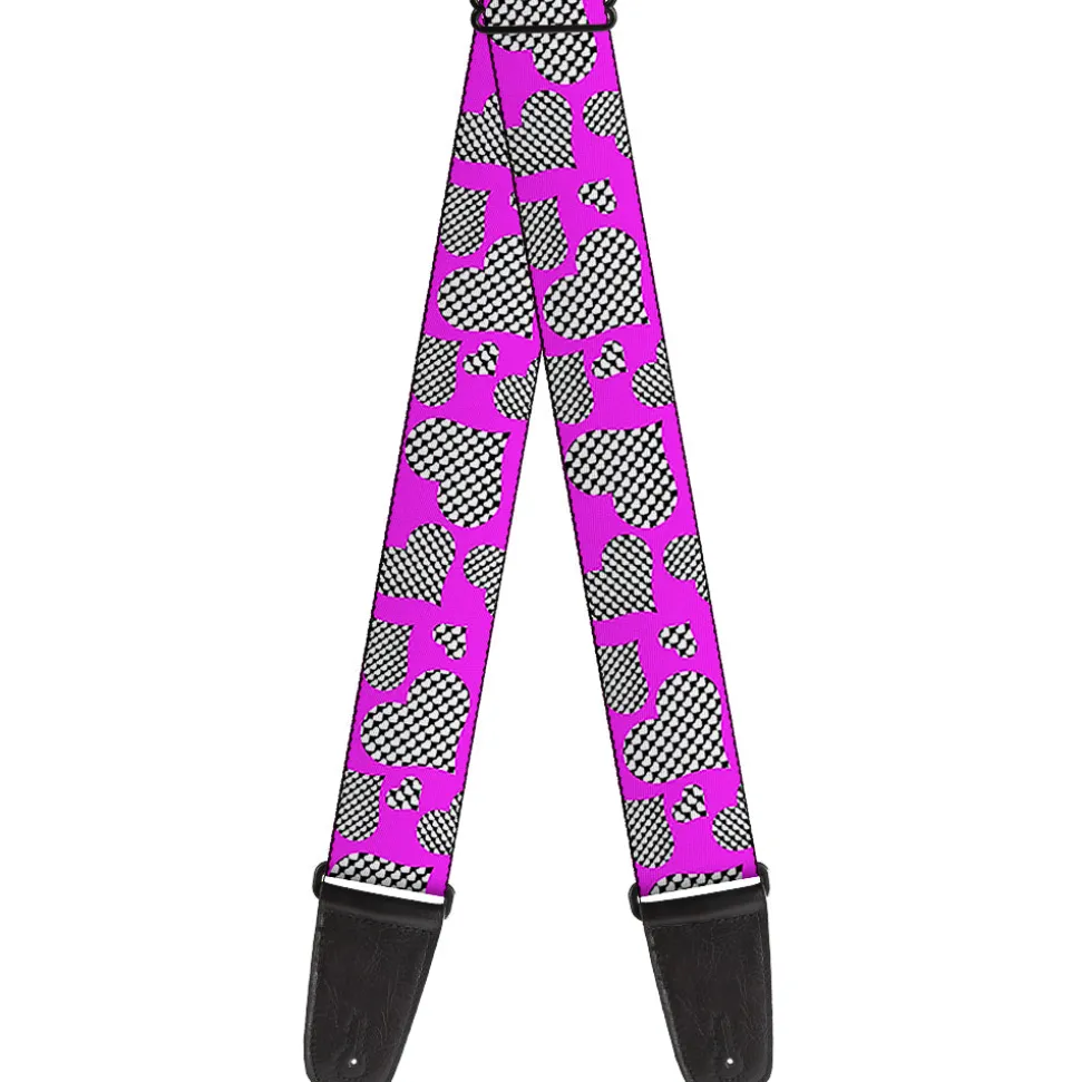 Guitar Strap – Eighties Hearts Fuchsia Black White