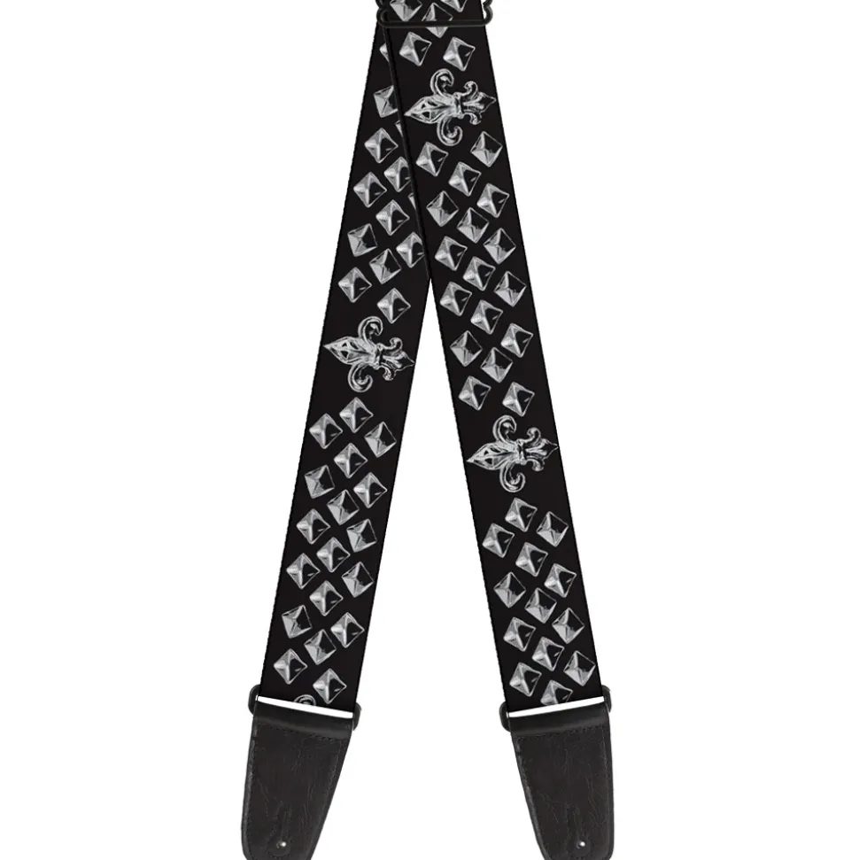 Guitar Strap - Fleur-de-Lis Studs Black Grays