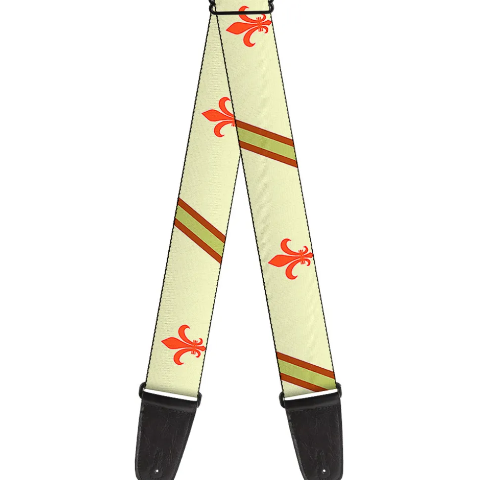 Guitar Strap – Fleur-de-Lis2 Stripes Tan Orange Brown Green