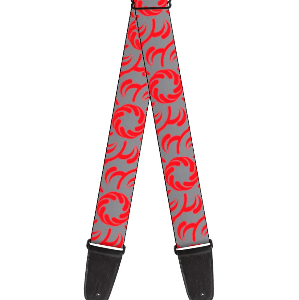 Guitar Strap - Floral Pinwheel CLOSE-UP Gray Red