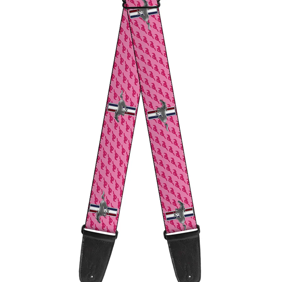 Guitar Strap – Ford Mustang w Bars w Text PINK LOGO REPEAT
