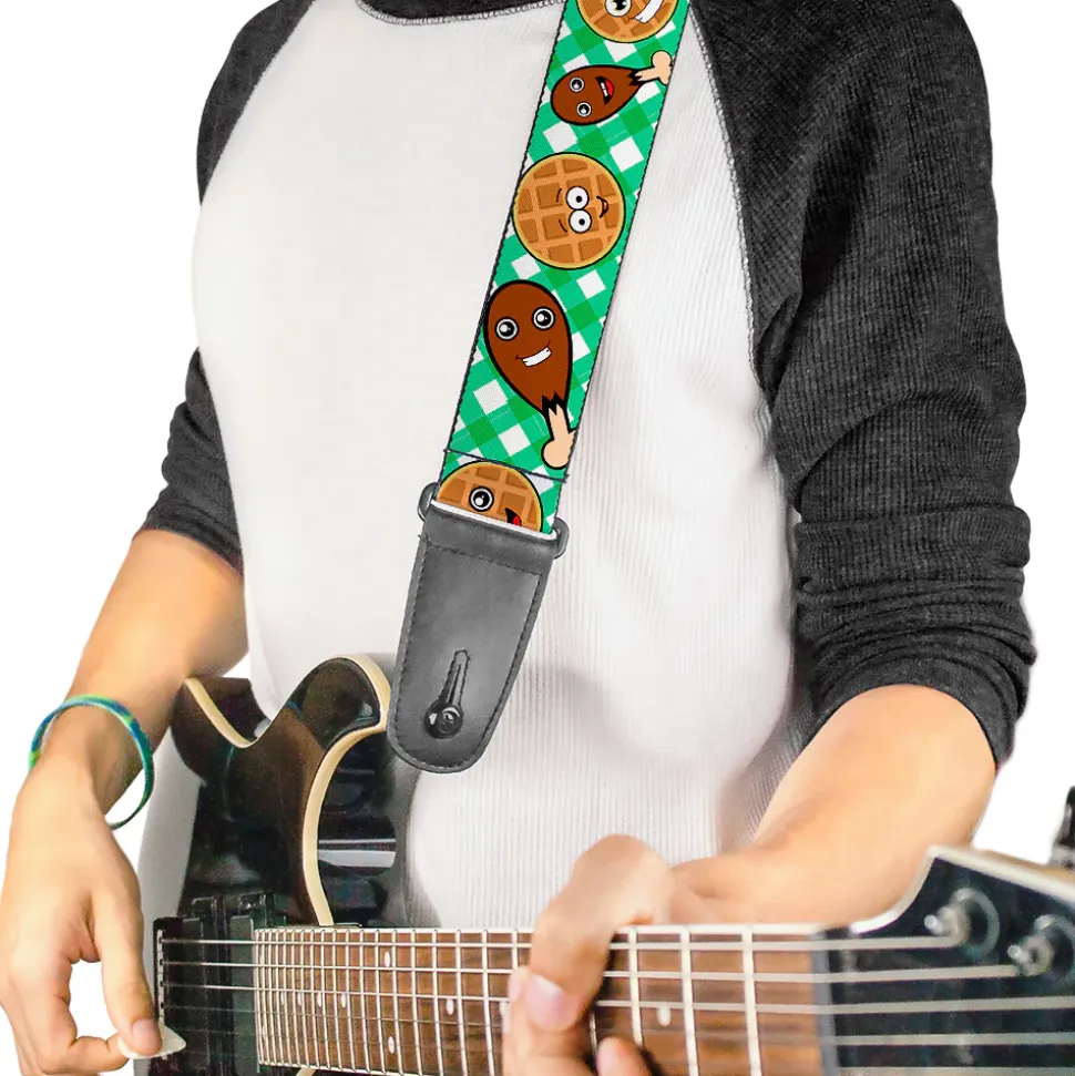 Guitar Strap – Fried Chicken & Waffles Plaid White Green