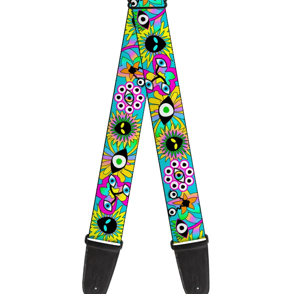 Guitar Strap – Funky Alien Flowers Aqua Blue/Multi Color