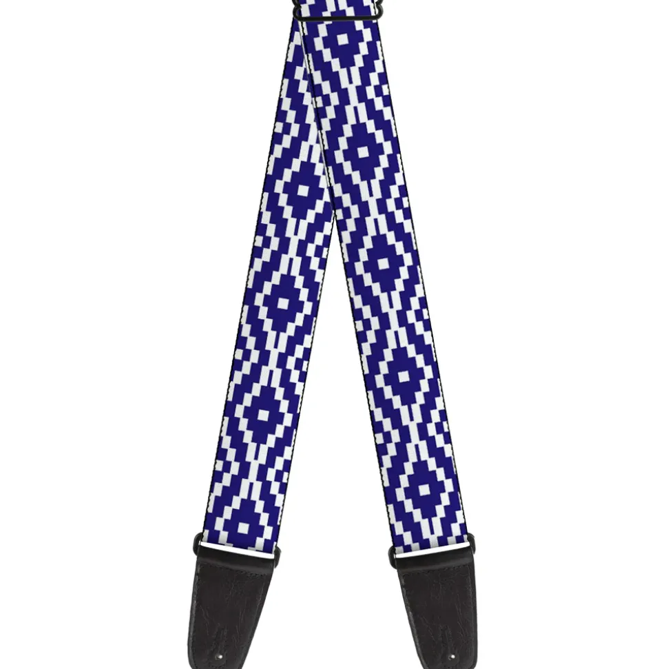 Guitar Strap - Geometric Diamond Blue White