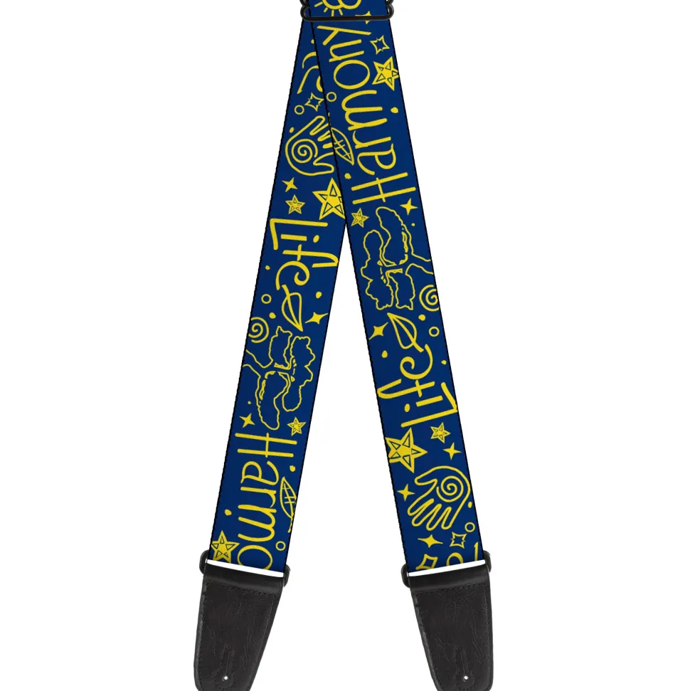 Guitar Strap - HARMONY BALANCE LIFE Icons Collage Blue/Yellow