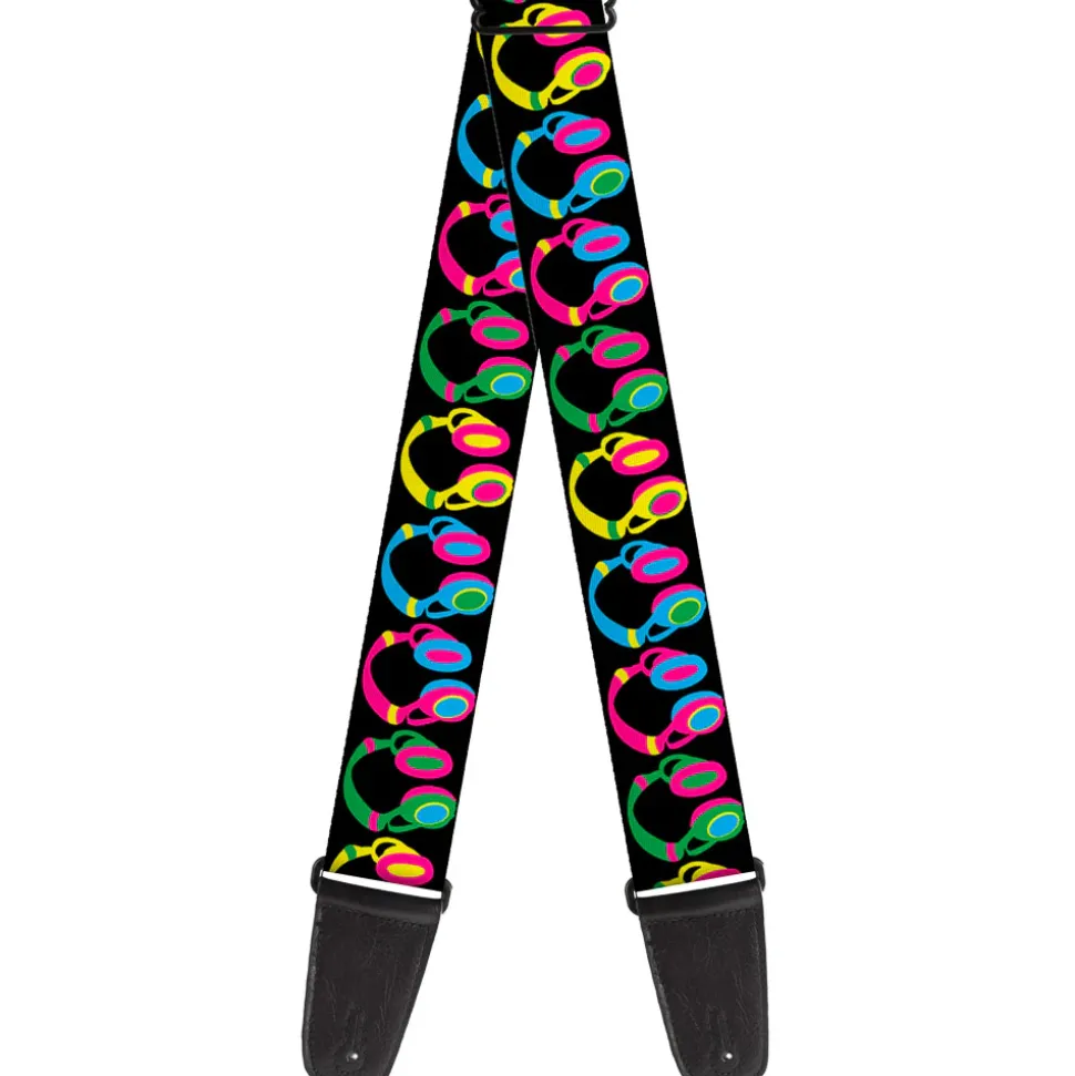 Guitar Strap – Headphones Black Neon