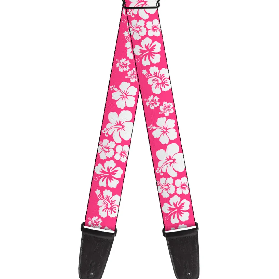 Guitar Strap – Hibiscus Neon Pink White