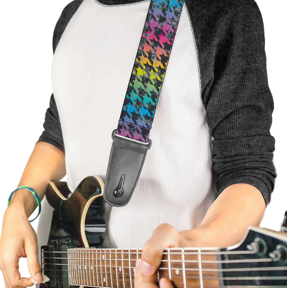 Guitar Strap – Houndstooth Black Rainbow
