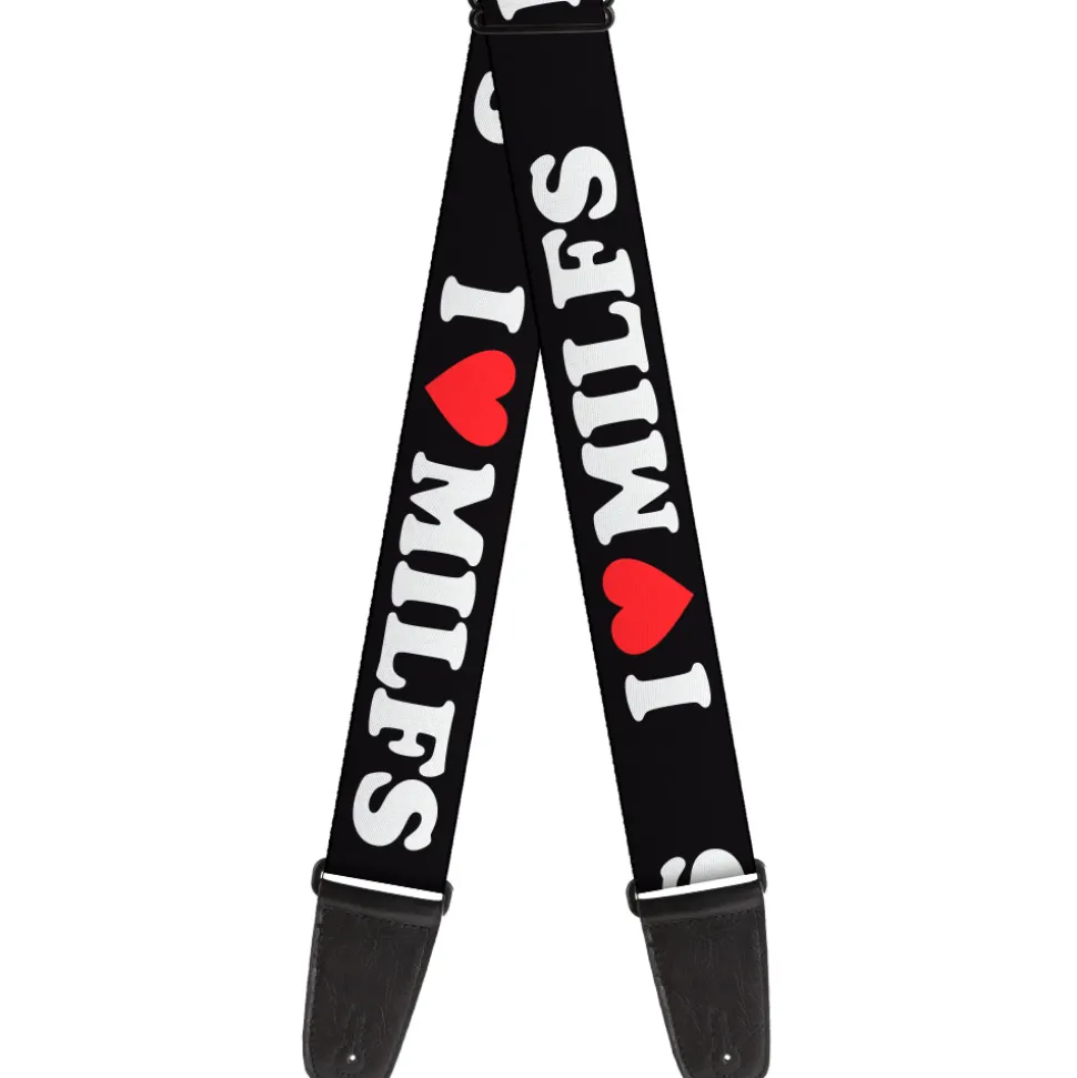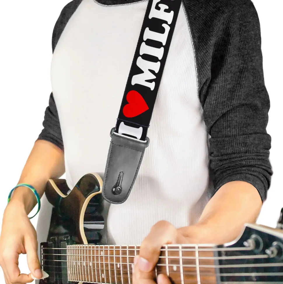 Guitar Strap - I "HEART" MILFS Black/White/Red