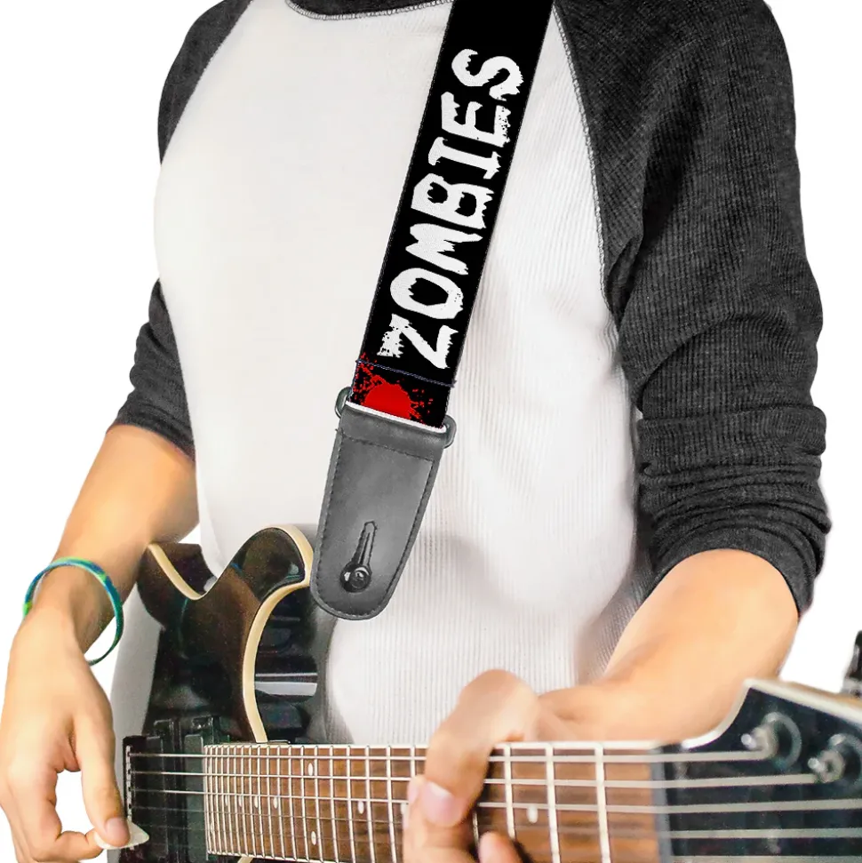 Guitar Strap - I "Heart" ZOMBIES Bloody Splatter Black White Red