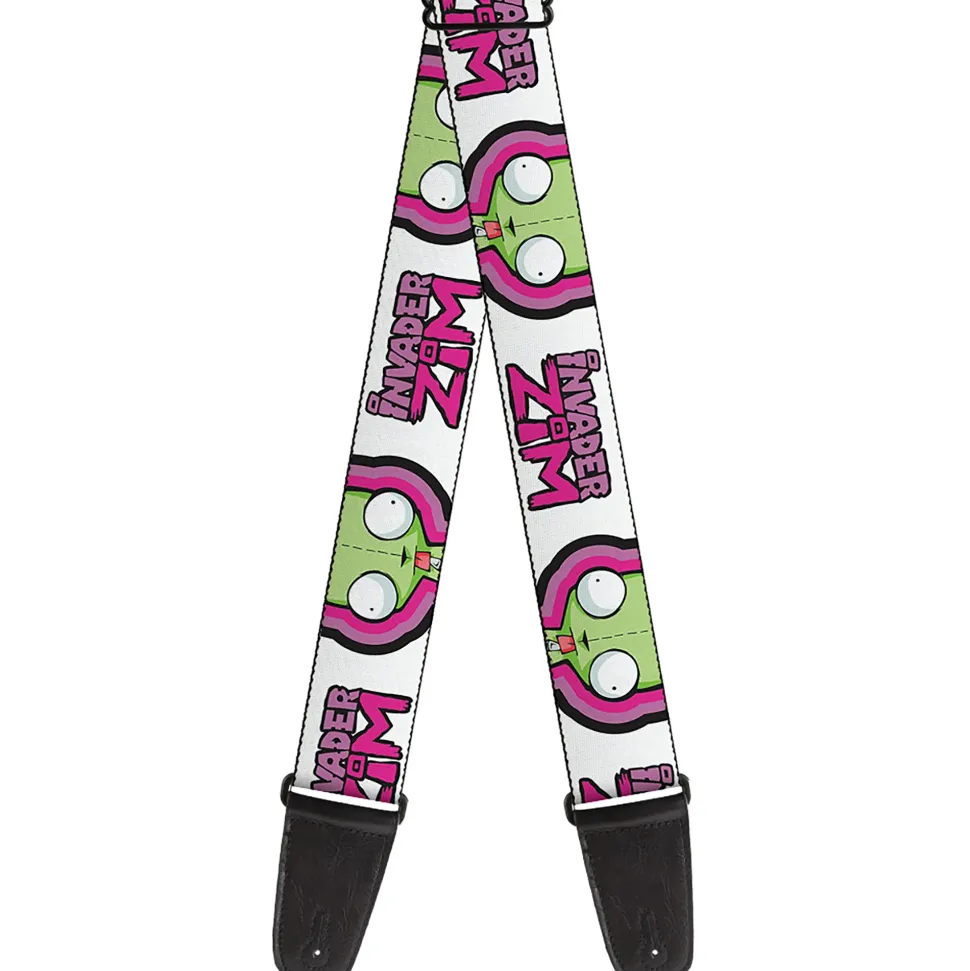 Guitar Strap - INVADER ZIM Title Logo and GIR Pose Close-Up White/Pinks