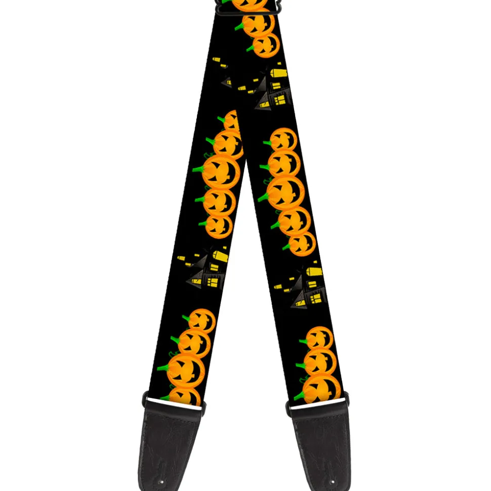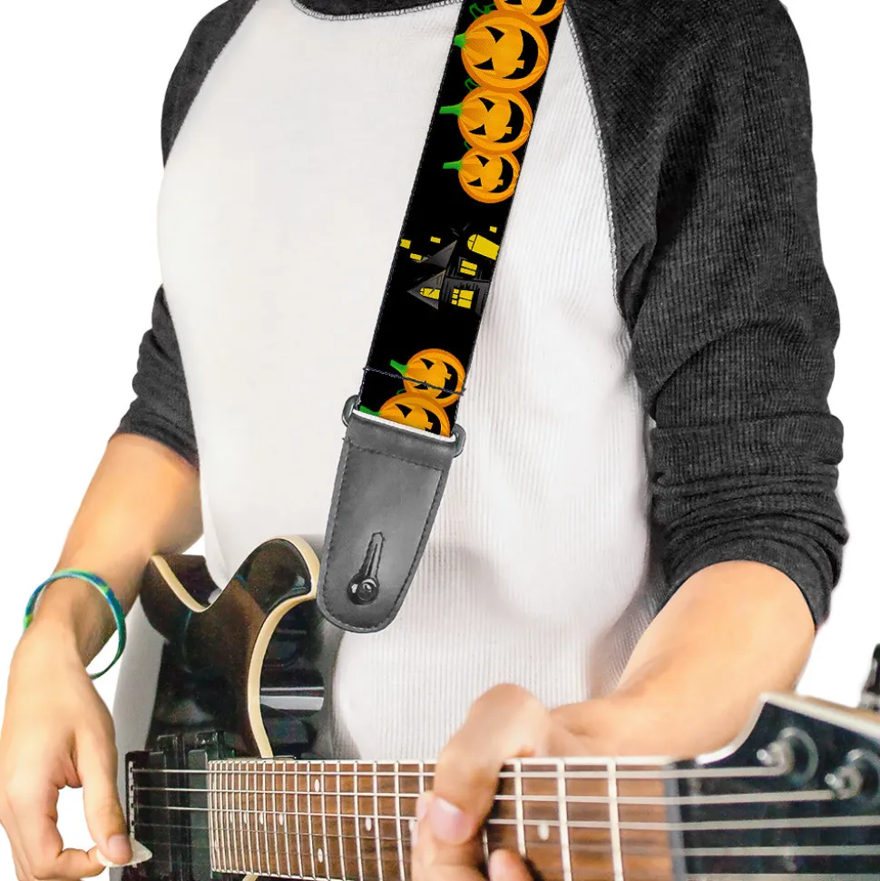 Guitar Strap – Jack-o'-Lanterns Haunted House Black Yellow