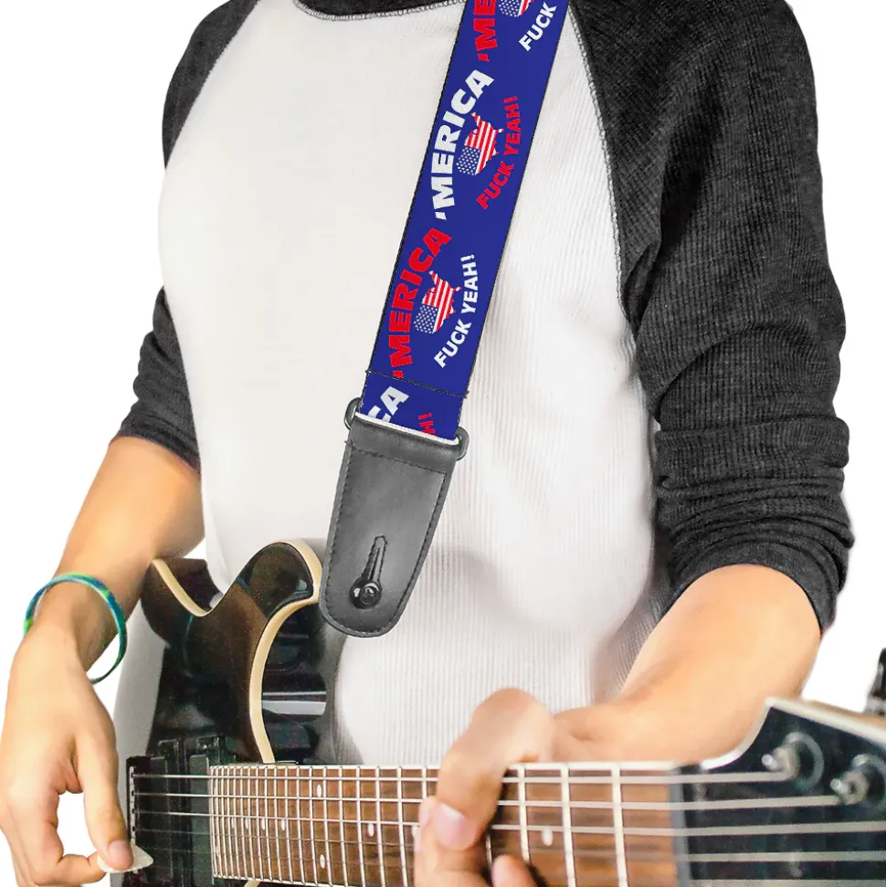 Guitar Strap – MERICA FUCK YEAH! USA Silhouette Blue White Red US Flag