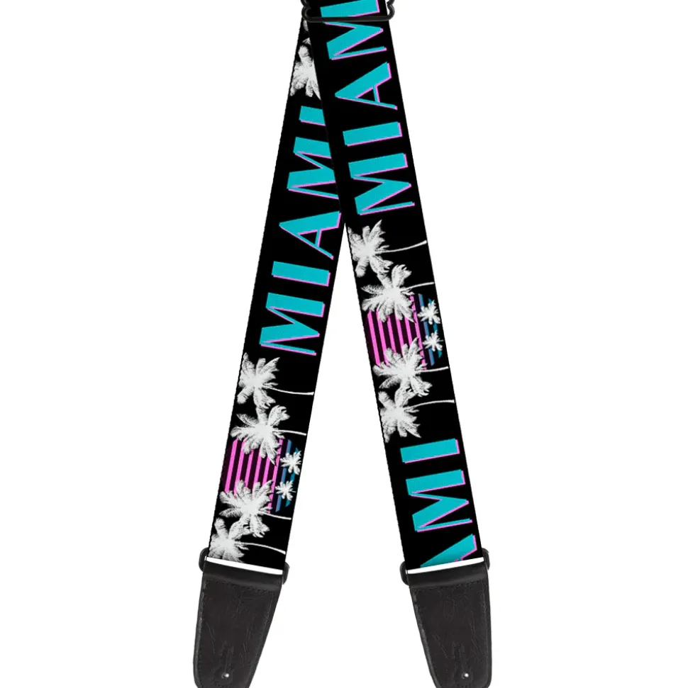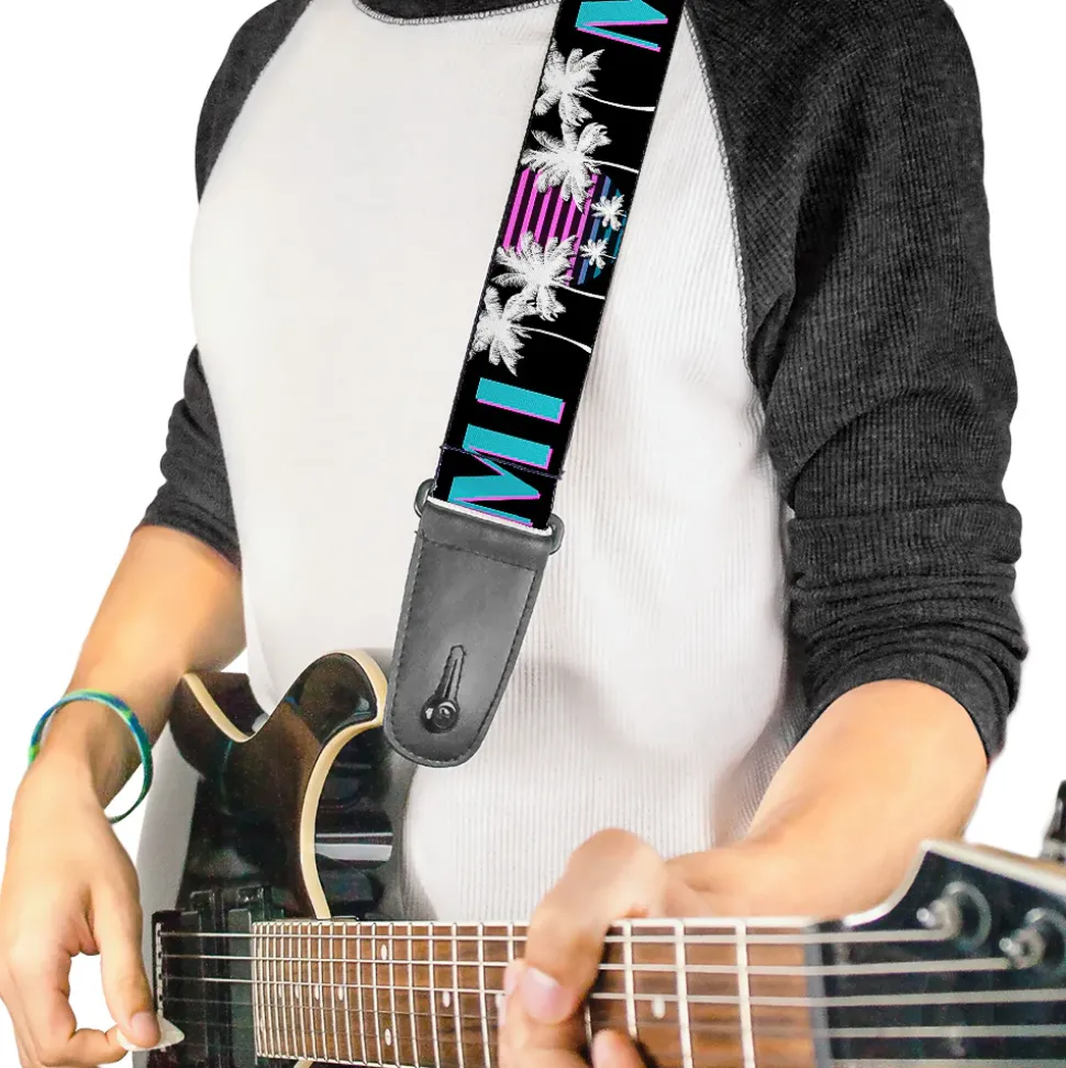 Guitar Strap – MIAMI Palm Trees Black White Pink Teal
