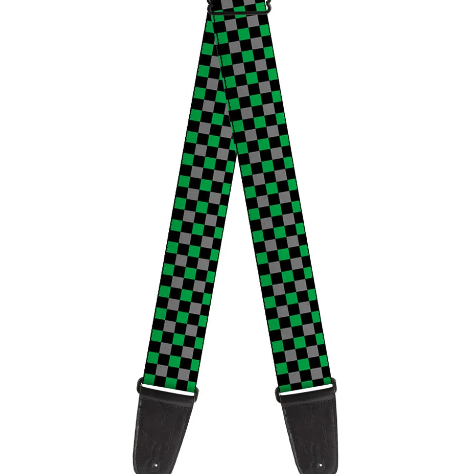 Guitar Strap - Mini Checker Black Gray 3 Green