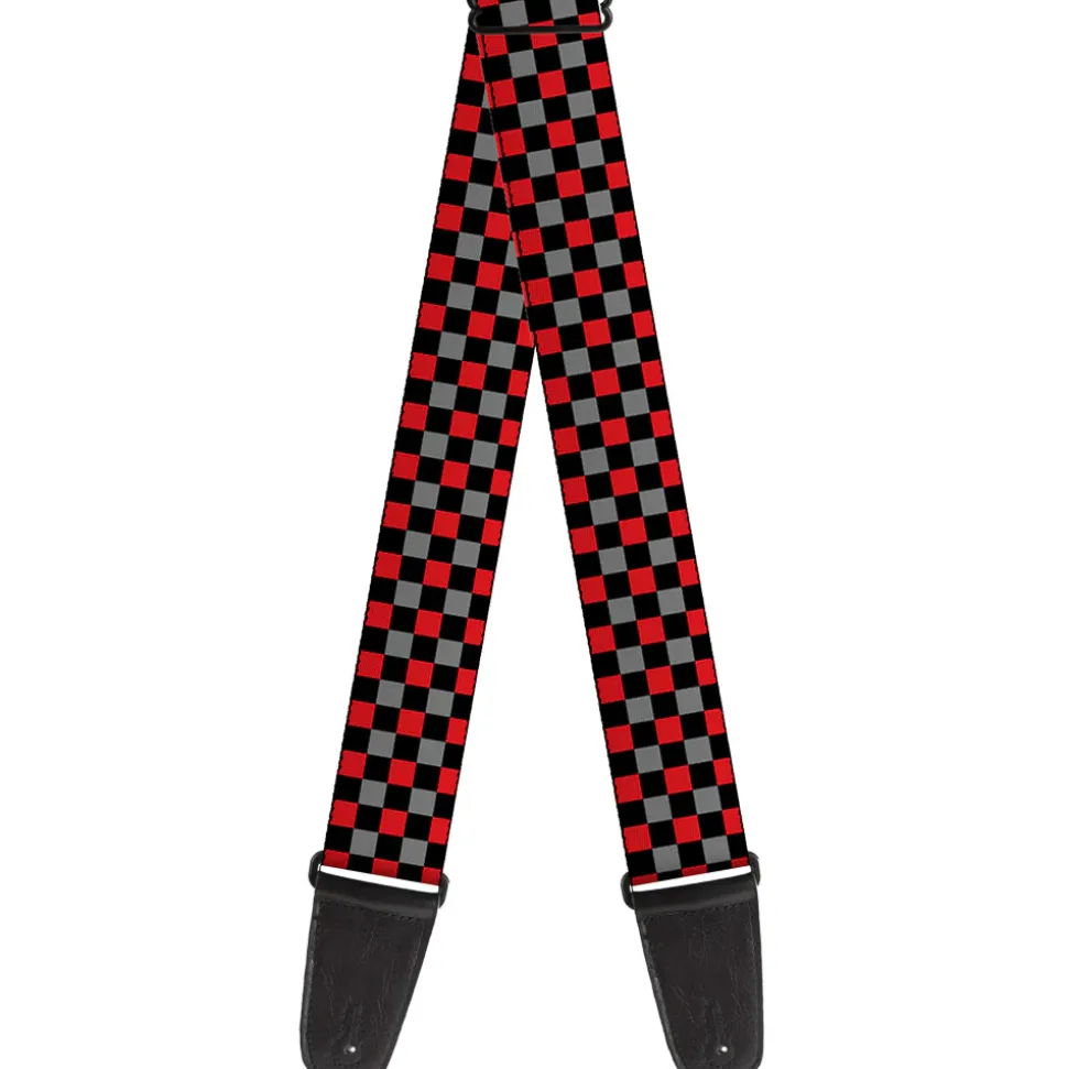 Guitar Strap - Mini Checker Black Gray 3 Red