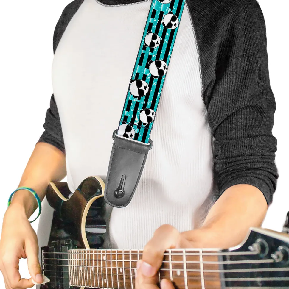 Guitar Strap – Multi Panda w Sunglasses Stripe Turquoise Black
