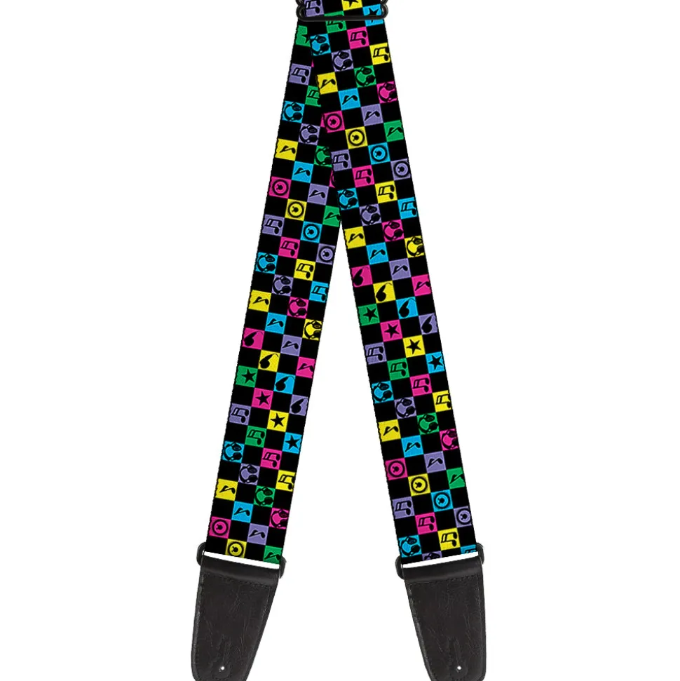Guitar Strap - Musical Checkers Black Neon