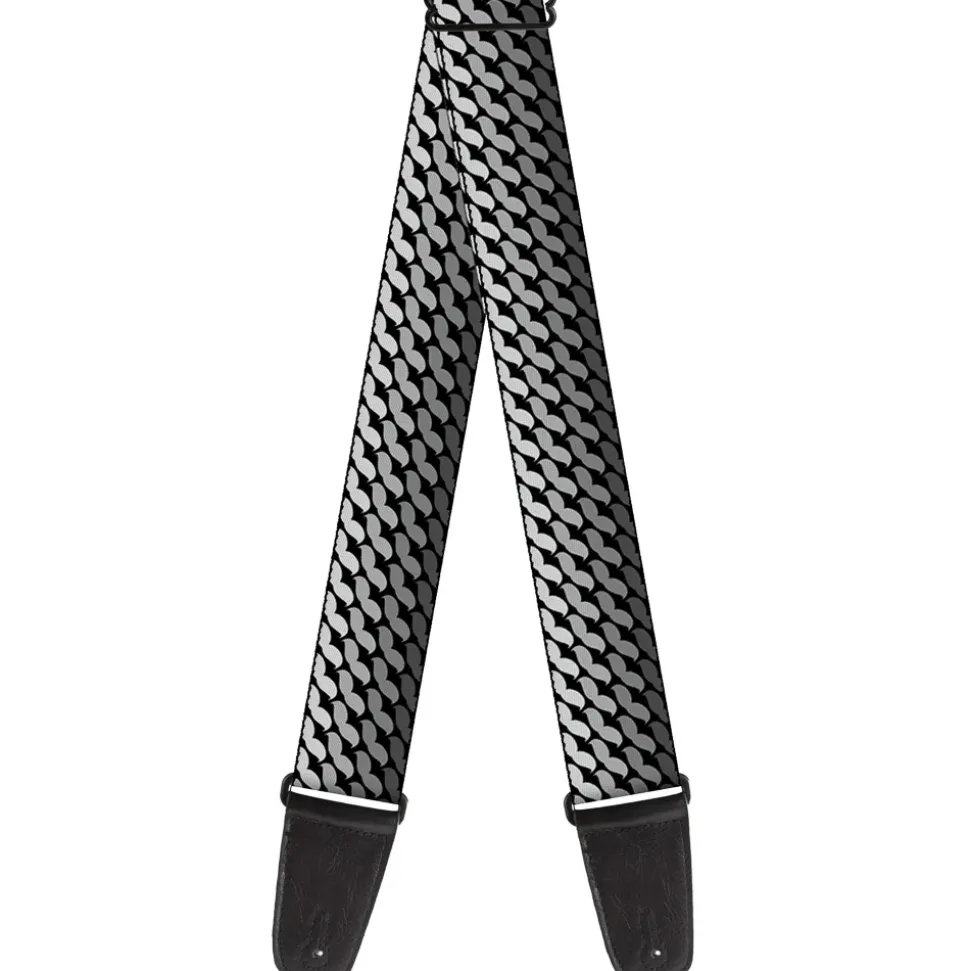 Guitar Strap - Mustache Monogram Black Grays