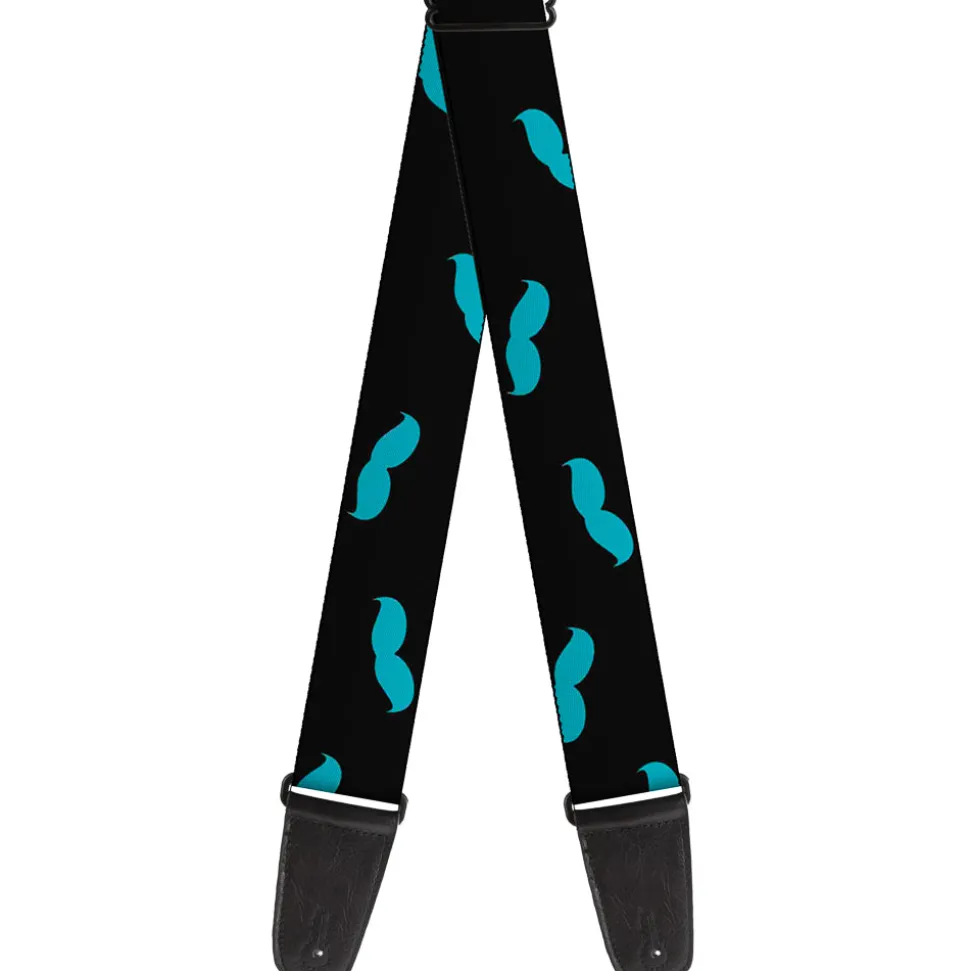 Guitar Strap – Mustaches Scattered Black Turquoise