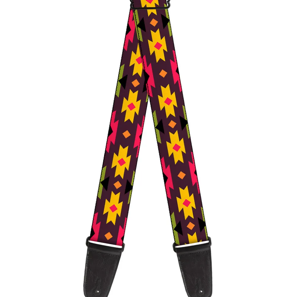 Guitar Strap - Navajo Orange Purple Yellow Pink Green Black