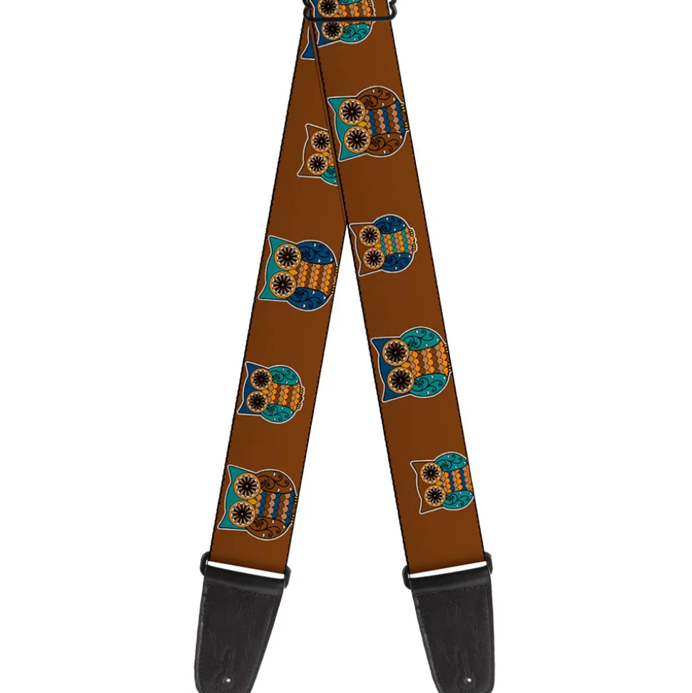 Guitar Strap - Owls Brown Pastel