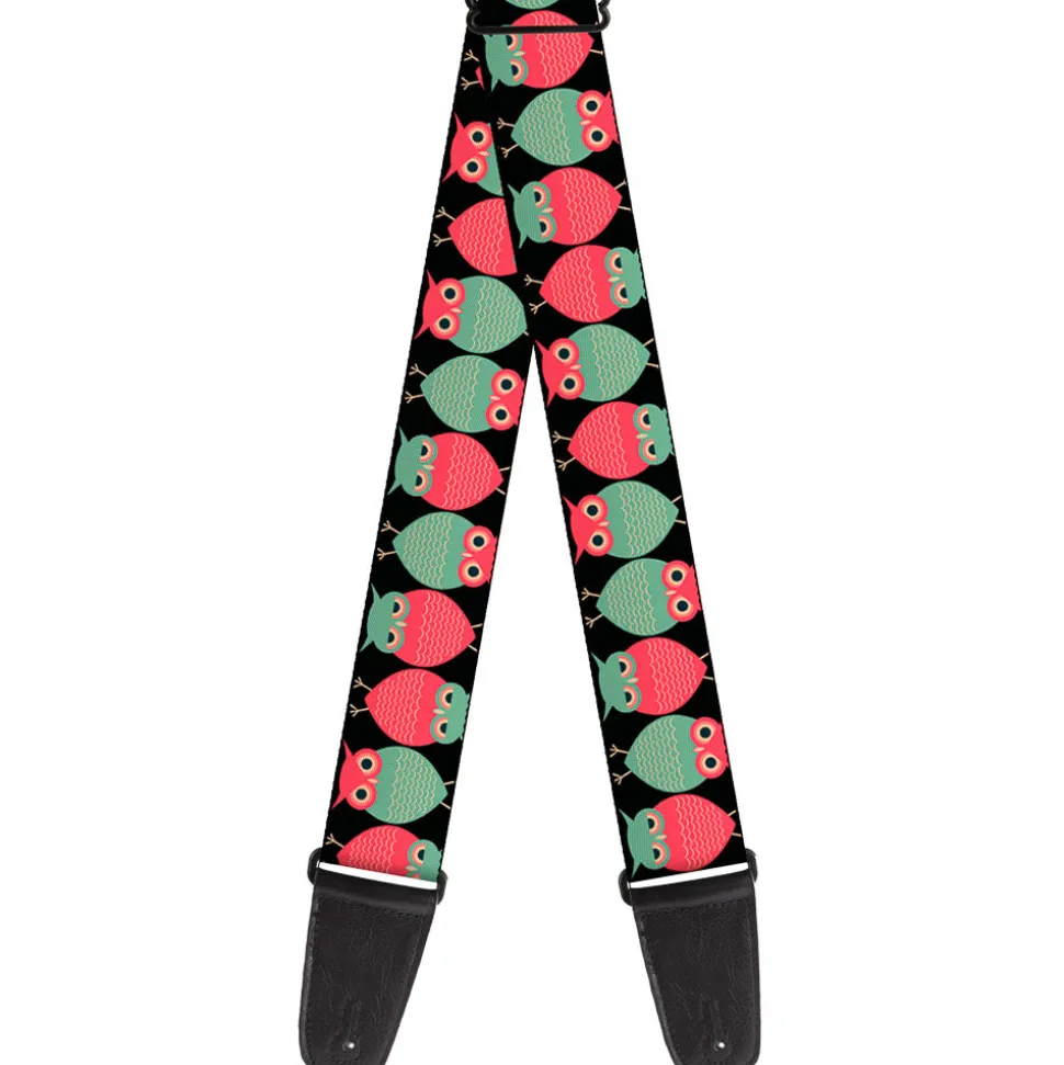 Guitar Strap – Owls Flip Black Mauve Sage