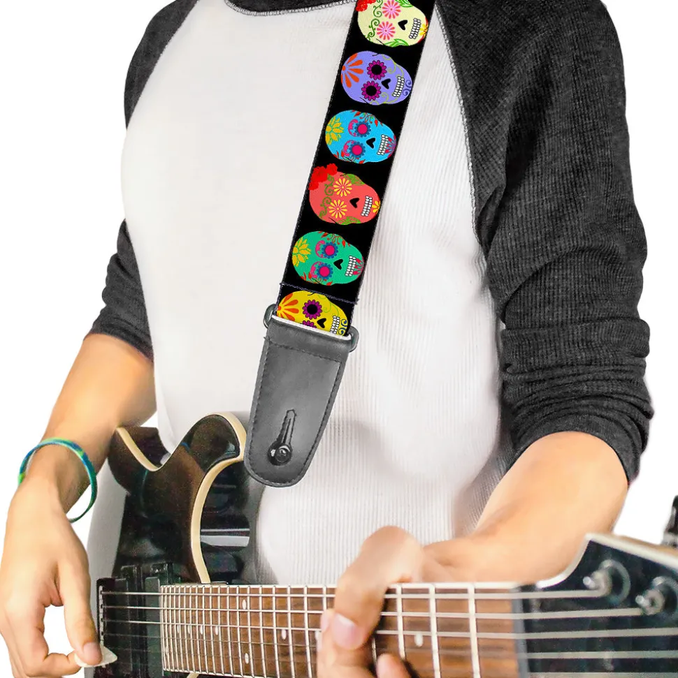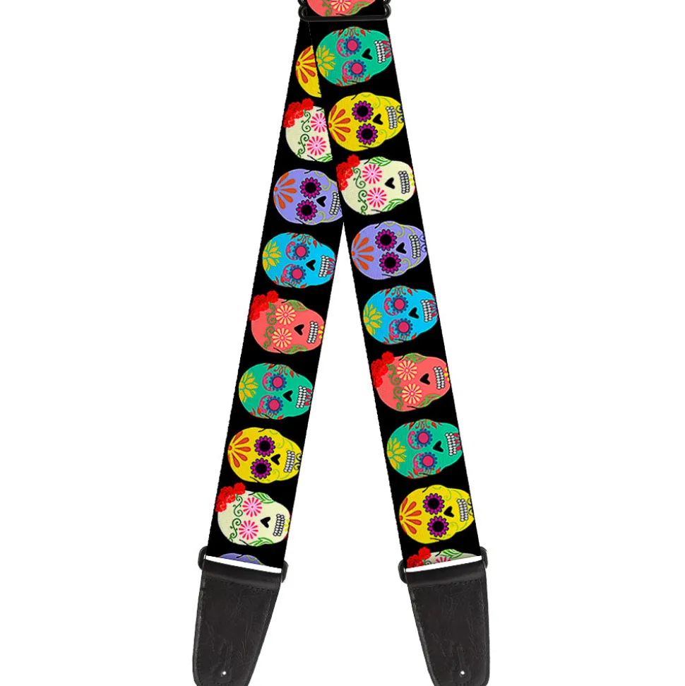 Guitar Strap – Painted Sugar Skulls Black Multi Color
