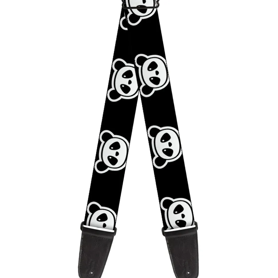 Guitar Strap - Panda Bear Cartoon2 Black White