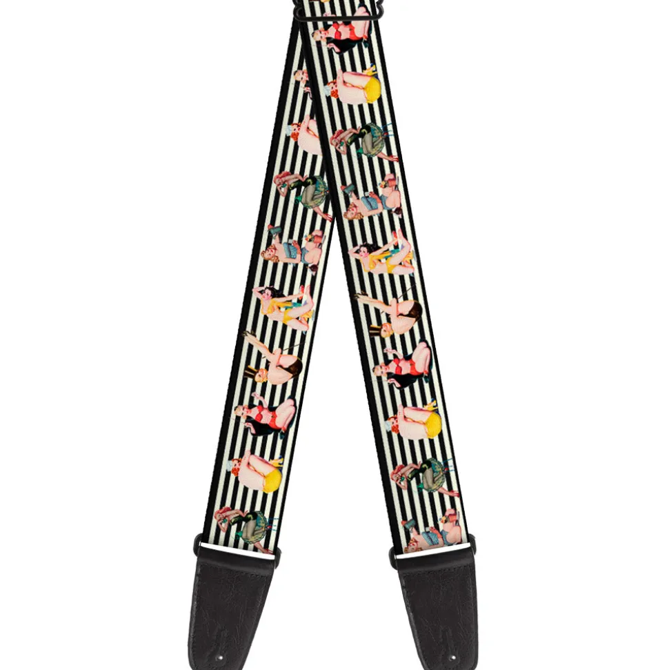 Guitar Strap – Pin Up Girl Poses Stripe Black White