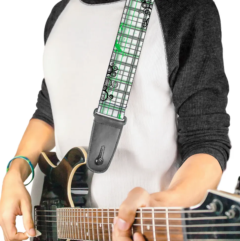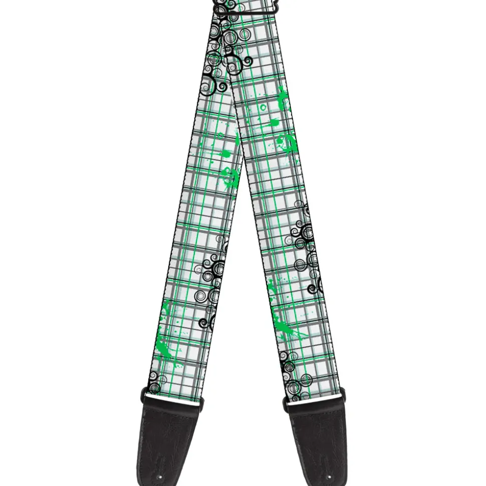 Guitar Strap - Plaid Curls White Black Gray Green