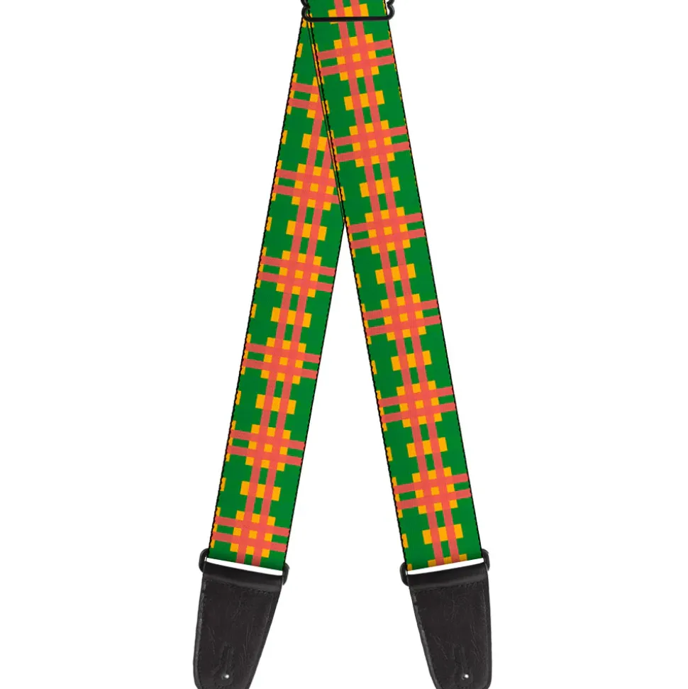 Guitar Strap – Plaid Gold Green Pink