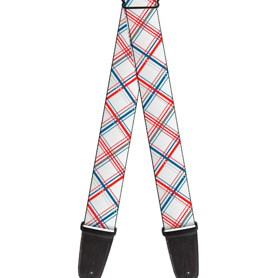 Guitar Strap – Plaid X White Red Turquoise Gray