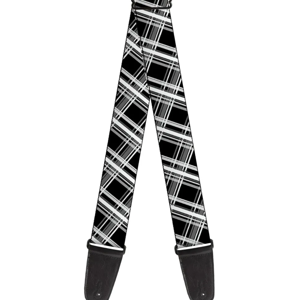 Guitar Strap – Plaid X2 Black Grays White