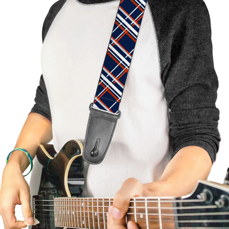 Guitar Strap – Plaid X2 Navy White Orange