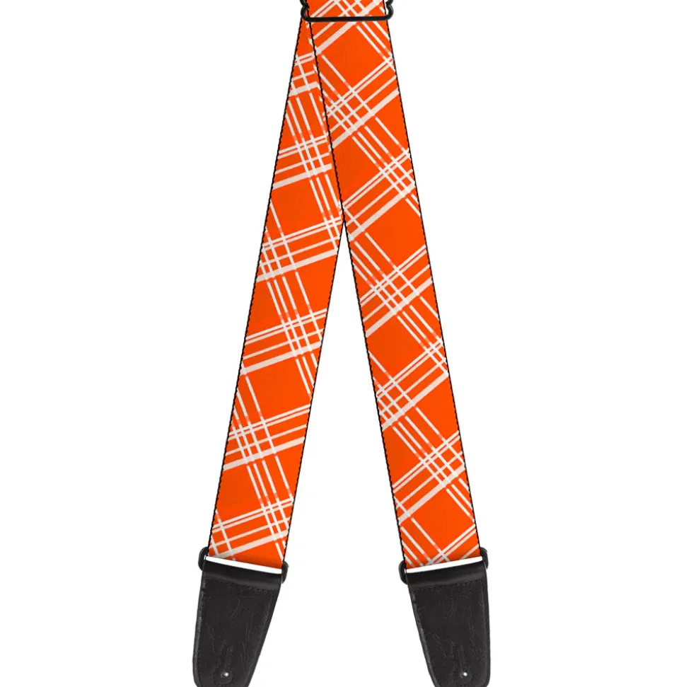 Guitar Strap – Plaid X4 Oranges White