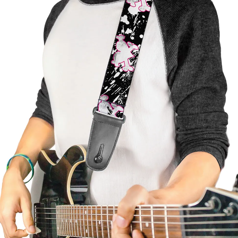 Guitar Strap – Punk Heart & Cross Bones w Splatter Black White