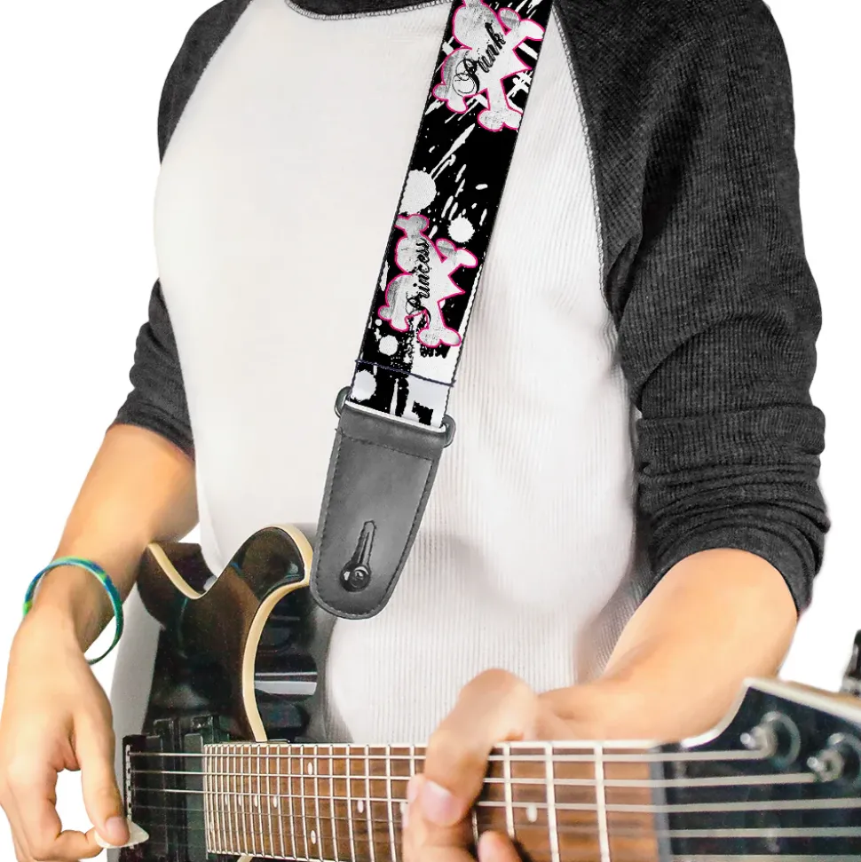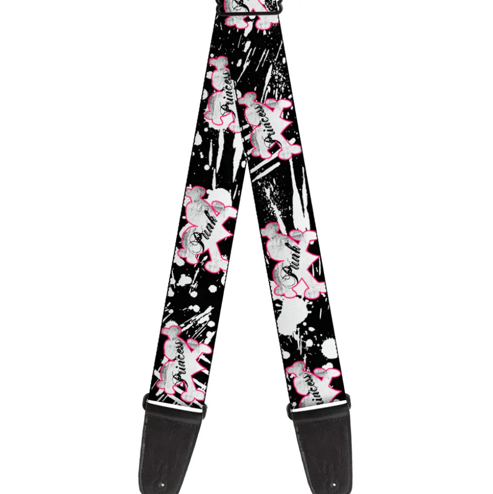 Guitar Strap – Punk Princess Heart & Cross Bones w Splatter Black White
