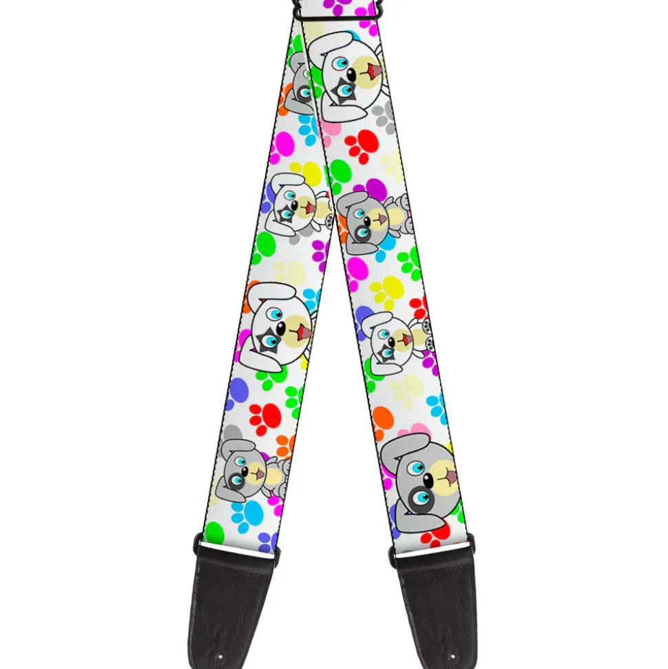 Guitar Strap – Puppies w Paw Prints White Multi Color