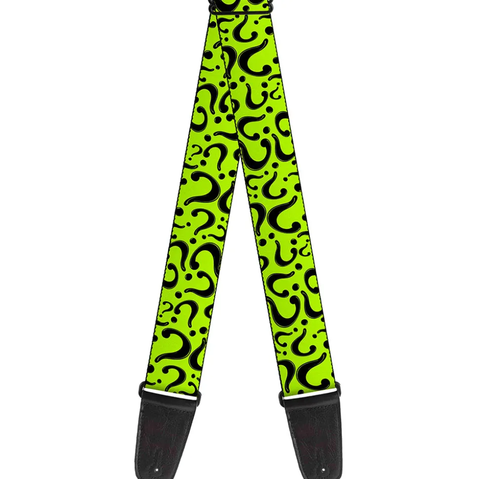 Guitar Strap - Question Mark Scattered Lime Green Black