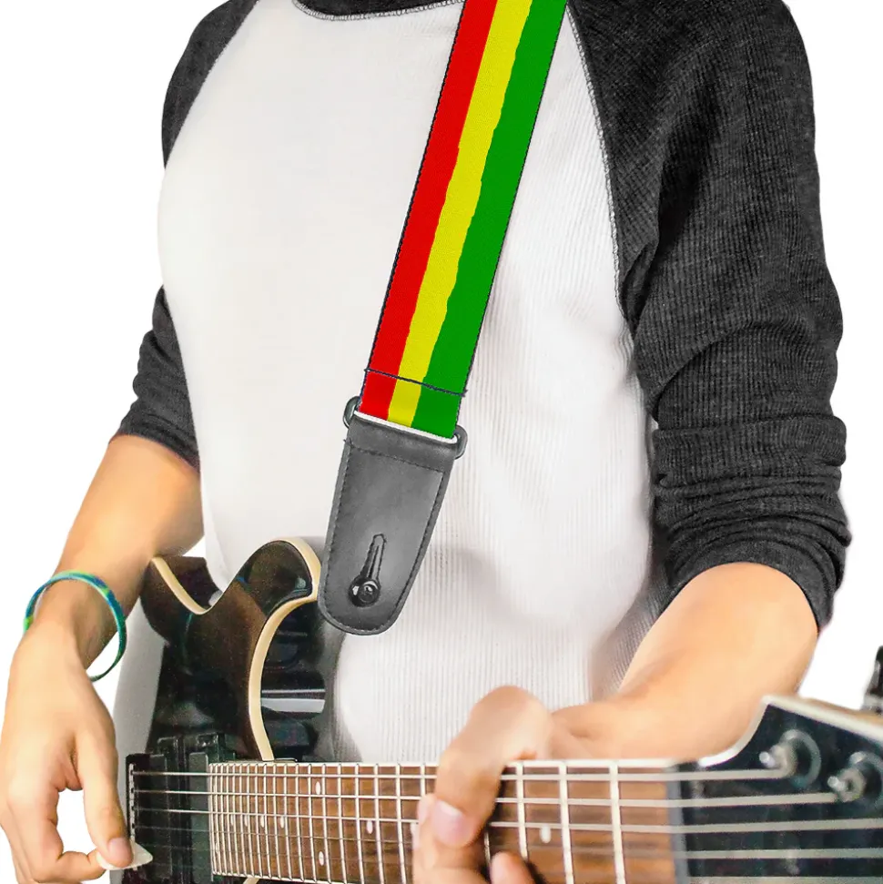 Guitar Strap – Rasta Stripes Painted Green Yellow Red