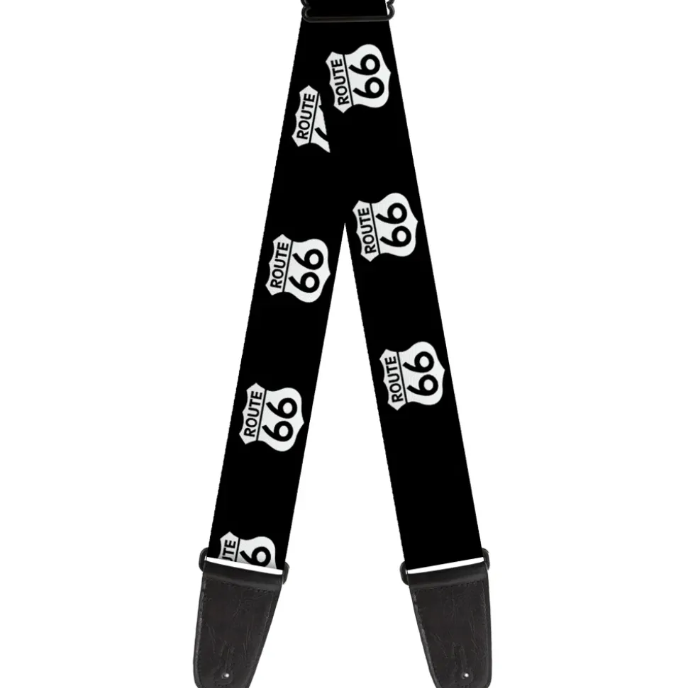 Guitar Strap - ROUTE 66 Highway Sign Repeat Black White